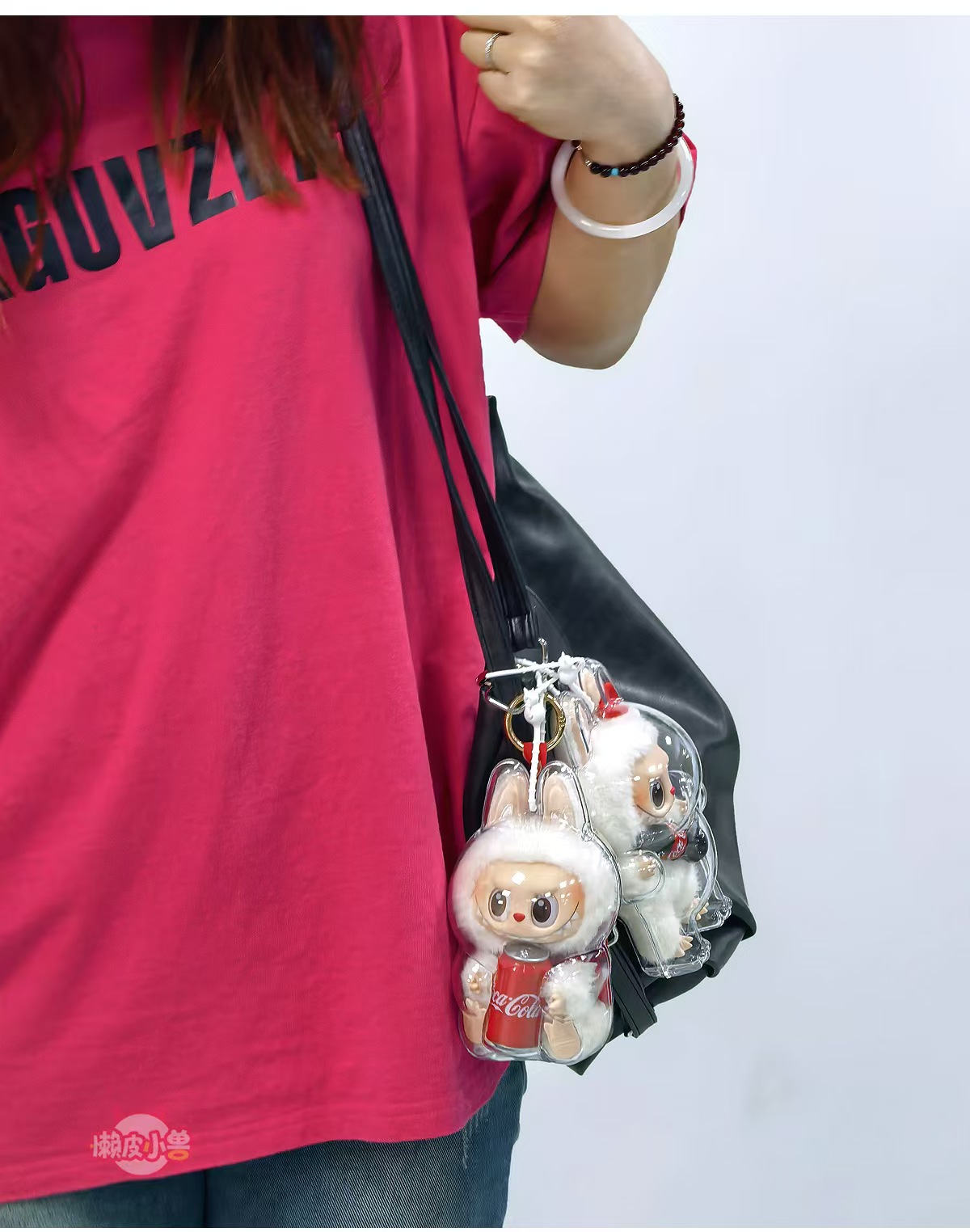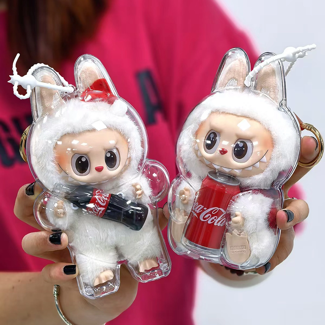 Labubu Coke Happy Factor Acrylic Case for mini dolls. Keep your collectible safe with our clear display at lafufu.fashion. Free shipping!